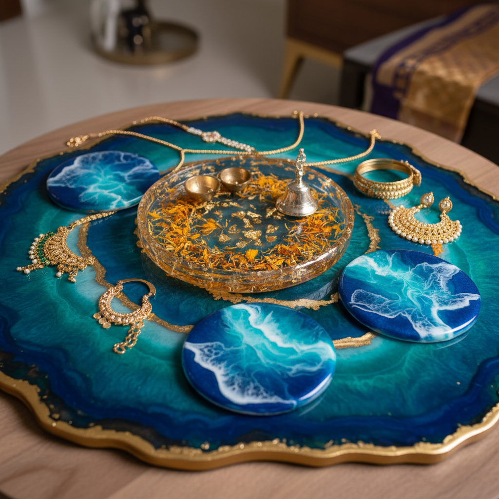 Make your daily pooja special with this 8-inch Premium Resin Pooja Thali.